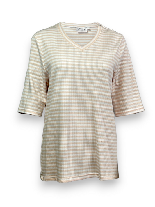 Women’s Adaptive Striped Cotton V-Neck Top – Open-Back, Short Sleeve